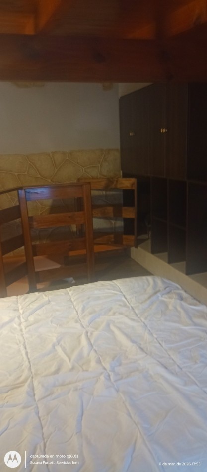 DEPARTAMENTO PARA UNA SOLA PERSONA, INGRESANDO POR GARAGE., SIN MASCOTA. HASTA DICIEMBRE 2026. AMOBLADO, TIENE : COCINA A GAS, TERMOTANQUE CALEFACTOR, AIRE ACONDICIONADO, HELADERA CON FREEZER, TV LED. COCINA COMEDOR, 1 BAÑO CON PEDILUVIO,, POR ESCALERA EL DORMITORIO CON PLACARD. SOLO DEBE TRAER SABANAS Y TOALLAS.